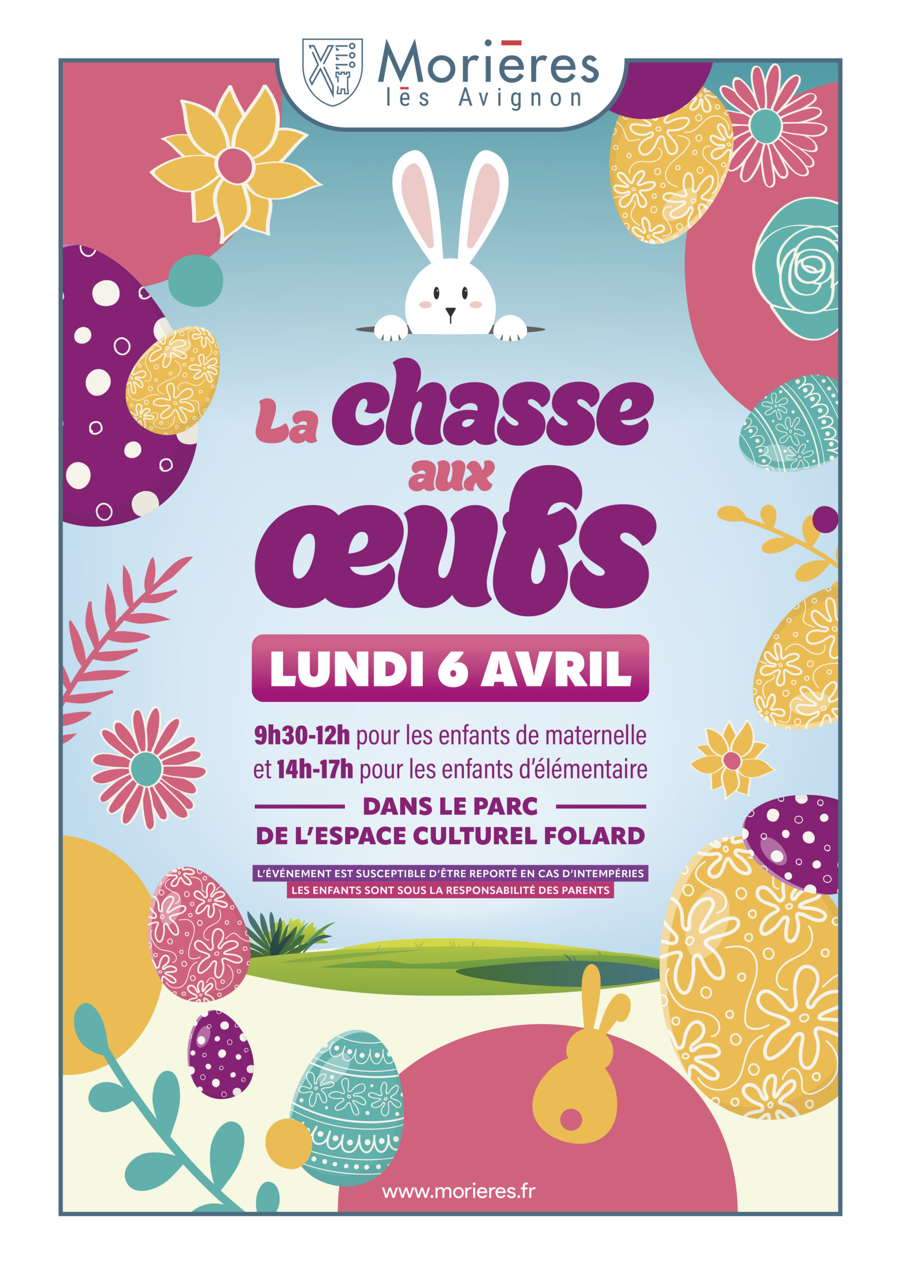 Lundi 6 avril 9h30-12h pour les enfants de maternelle et 14h-17h pour les enfants d’élémentaire Dans le parc de l’espace culturel Folard L’événement est susceptible d’être reporté en cas d’intempéries Les enfants sont sous la responsabilité des parents |